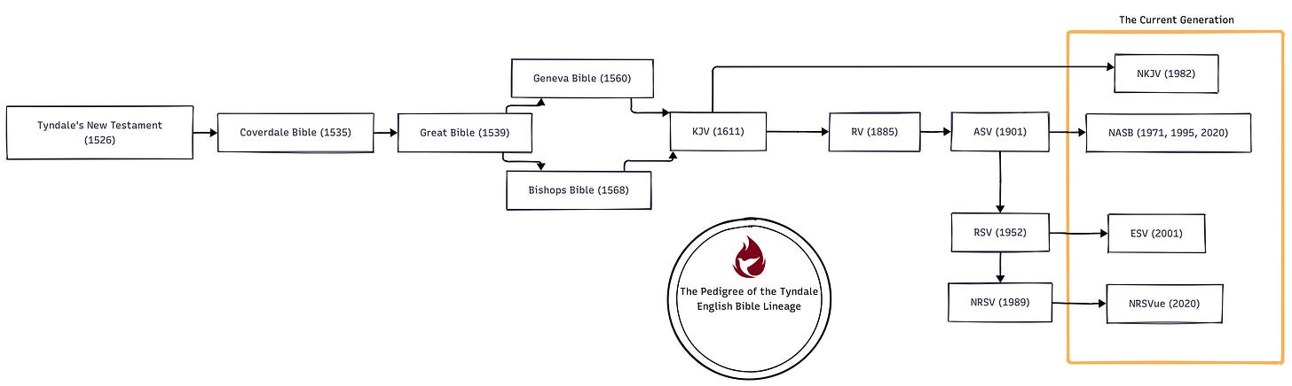 Of course, I greatly value translations that are outside the English Bible tradition—especially the CSB and the NET. I find them refreshing and good tools for study alongside the original languages. Yet, they can’t replace our cultural memory for a variety of reasons. Chief among them is our cultural memory grounded in the Tyndale-King James lineage. In the English world, before the publishing of the NIV in 1978, nearly every Bible was in this lineage: from Tyndale’s New Testament in 1525 to the Revised Standard Version in 1952, everyone was reading from Bibles of the same lineage and a shared base text. That means for over 450 years, the culture of the English-speaking world was influenced by one shared biblical basis, with only minor variations, but largely grounded in the stability of the King James Version (KJV) and those translations derived from her. It is impossible for a new Bible tradition to have that level of impact. New translations only divide the English pedigree, and the rise of new translations have not created new pedigrees. Rather, there is the traditional pedigree on one hand, and disarray on the other.