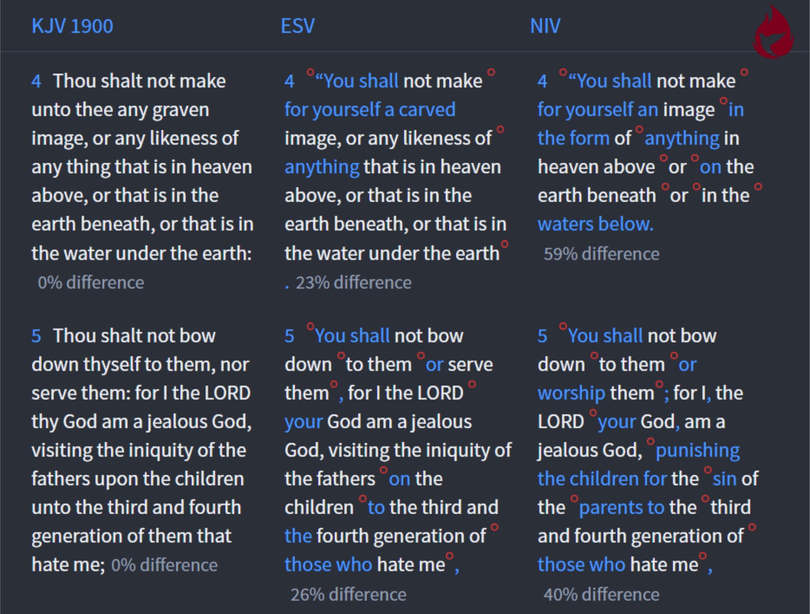 There is a liturgical and catechetical component to this argument that must be clearly stated. As the Scriptures are read within the congregation and over family dinner tables, they are being etched into the fabric of the family, congregation, community, and culture. Therefore, the translation being read from in worship settings ought to support the cultural fabric of the community and culture, not erode it. For example, if a family is teaching their children The Ten Commandments, or perhaps some of the family learned them in Sunday School growing up, they may be able to find themselves reciting nearly word-for-word as it is being read in the ESV. It is likely the older folks in the pews grew up on the KJV, RSV, or NKJV and taught their children and Sunday School classes from it. Yet, consider the mental gymnastics parishioners will undergo if the Bible is being read in the NIV: